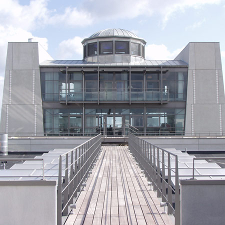 兩座設計有輕質(zhì)玻璃部件的行政部門、會客廳和接待區(qū)域的阿爾博白混凝土塔靈感來源于拉美西斯二世的盧克索寺正門豎立的雙塔。