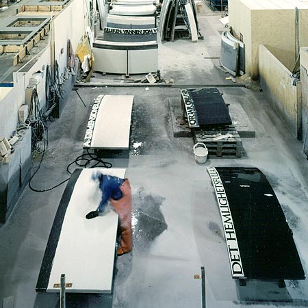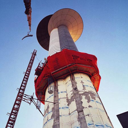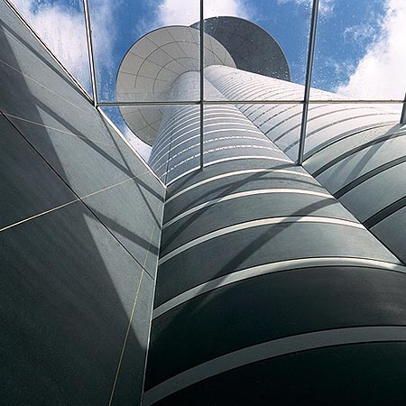 為了增強(qiáng)雕塑的感覺(jué),控制塔主體由鑲嵌字母組成句子的預(yù)制構(gòu)件覆蓋,其內(nèi)容來(lái)源于1928年Antoine de Saint-Exupérus寫的小說(shuō)《Mail Plane South》。