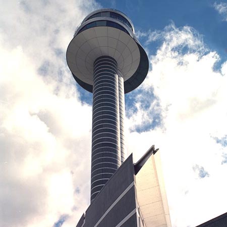 DC9機(jī)身的各個(gè)部件的形狀激發(fā)了控制塔底部的建筑物設(shè)計(jì)。可以從主體形狀和塔的上部結(jié)構(gòu)的翼狀表面辨認(rèn)出。