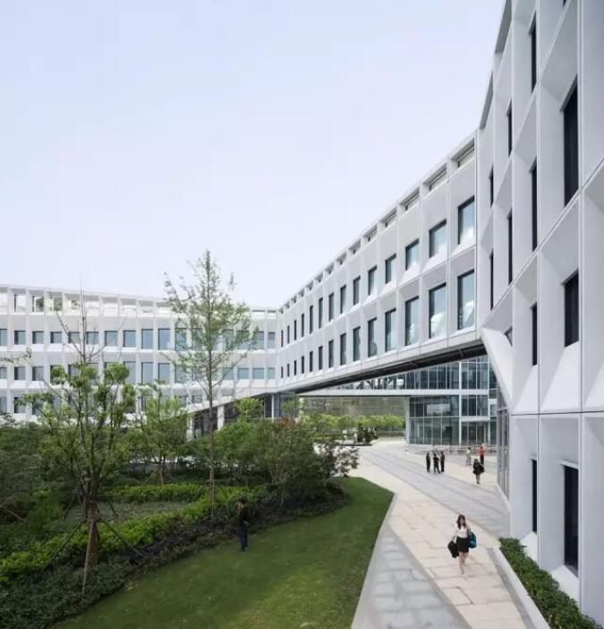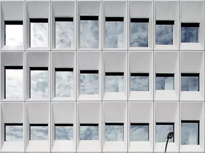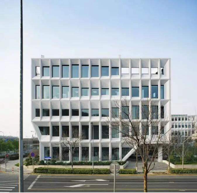 每個屏板由GRC(玻璃纖維混凝土)材料制成,使用阿爾博?牌52.5級白水泥,去皮露出白色骨料,整個幕墻的屏板多達千個,運用數(shù)字化算法對單元格進行邏輯分析形成幕墻優(yōu)化方案,使得最終用26種單元屏板就能組成整體立面上的變化,并貫穿幕墻施工深化和施工過程。每個屏板也是集合外圍護、采光、遮陽、通風、夜景照明為一體的立面構件,先在工廠里預制組裝,然后將組裝好的屏板運輸?shù)浆F(xiàn)場、吊裝裝配起來。通過4個1:1大小的mock up屏板兩年時間的風吹日曬實驗,清潔度和精密度還保持很高的水準,之后才對整個幕墻進行裝配式建造。