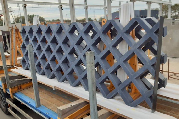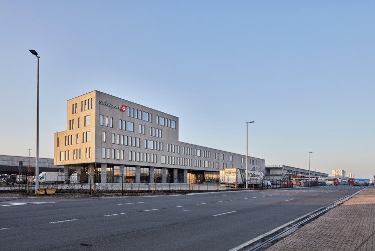 在今年剛建造完成的新布魯塞爾機場瑞士港裝卸和辦公大樓,由Archipelago and Group Infrabo設(shè)計,并由Cordeel Hoeselt NV建造。作為建筑物最引人注目的部分之一,開放式結(jié)構(gòu)的外立面是由C-concrete公司生產(chǎn)的深灰色超高性能混凝土(UHPC)幕墻。