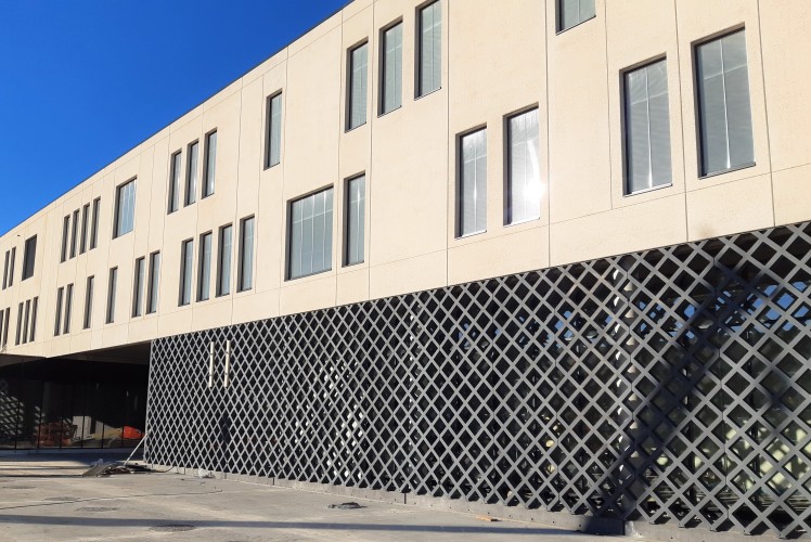 UHPC面板采用薩門特集團的INWHITE?旗下的Aalborg Extreme?預(yù)拌混凝土制成,尺寸為4.7m x 1.5m x 0.15m,纖細(xì)的網(wǎng)絡(luò)面板使室內(nèi)能夠照進充足的陽光,并同時保持辦公環(huán)境的隱私。